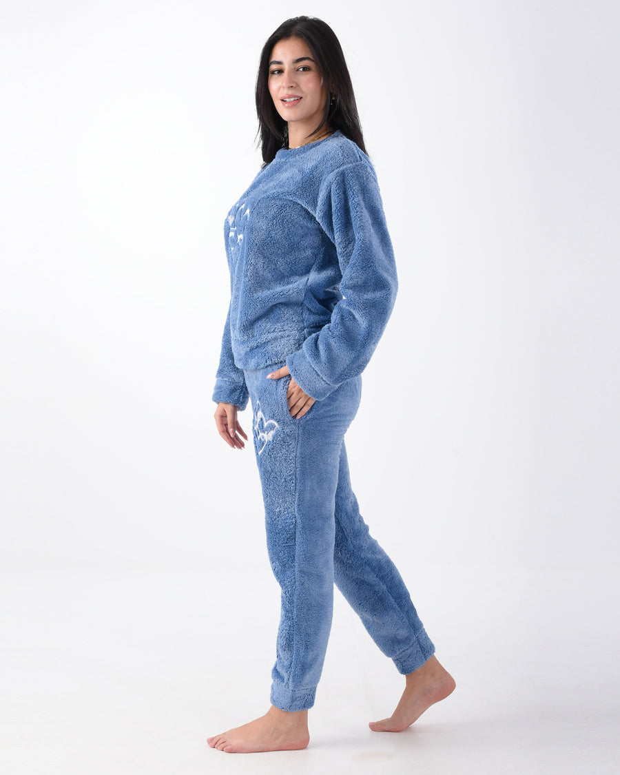 Petroleum-Treated Fur Pajama with White Heart Embroidery