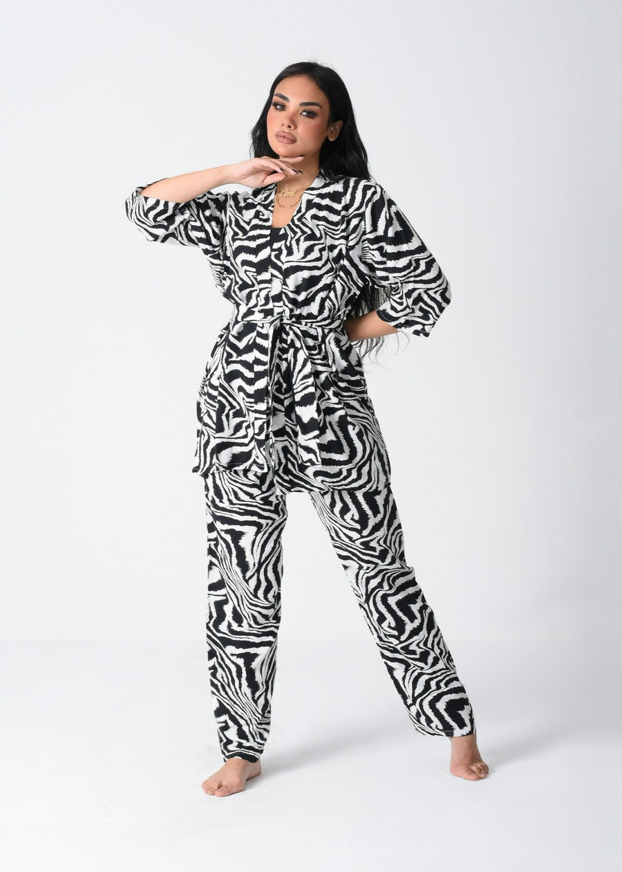 بيجامه قطعتين خامه فسكوز مع طباعه زيبرا لون ابيض مع زييرا اسود