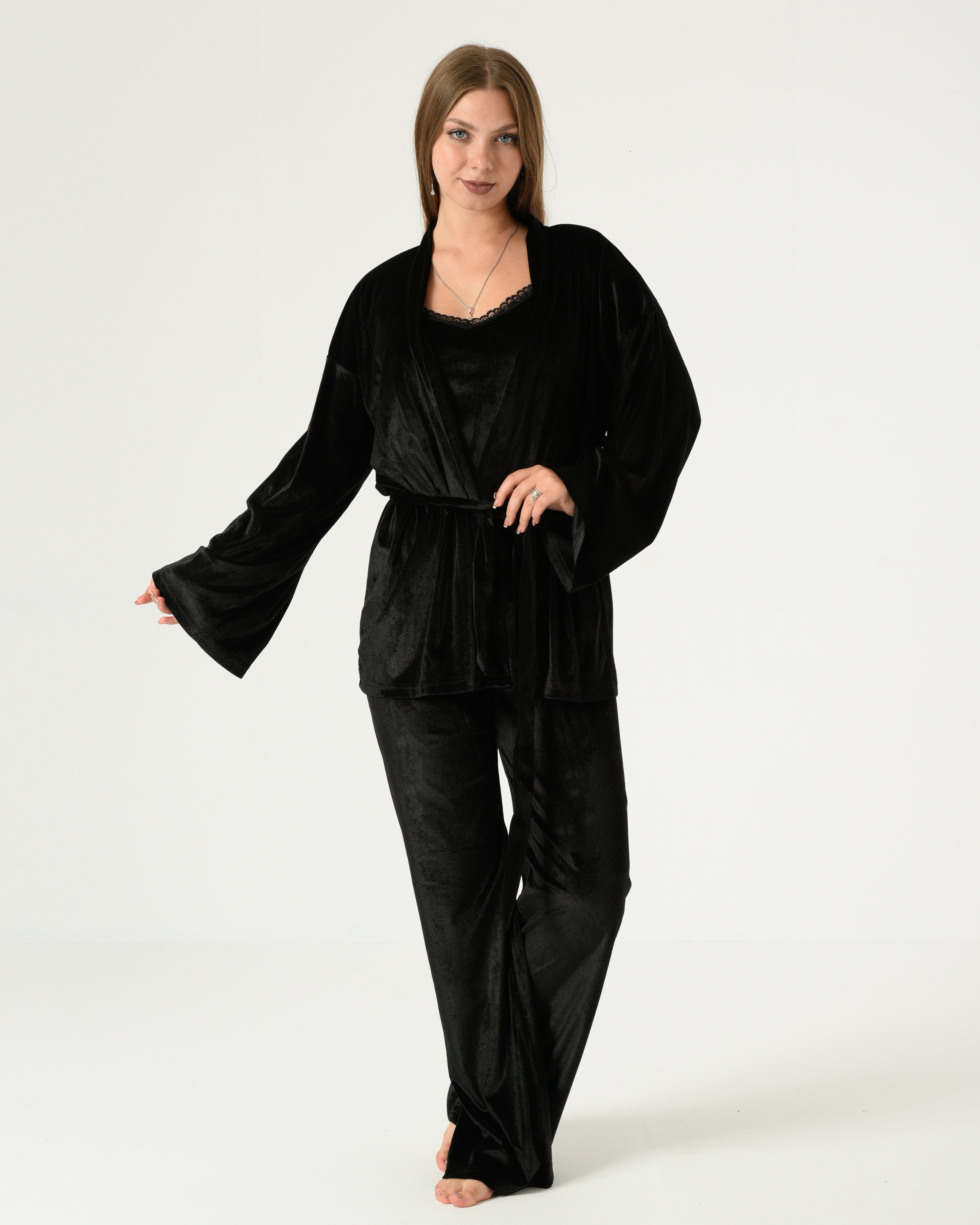Luxury Velvet 3-Pieces Pajama Set – Black